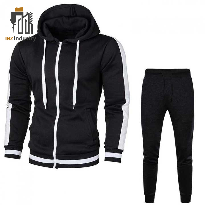 Black Sports Suit combines comfort and style, featuring a zip-up pullover hoodie with a regular fit for ease of movement. Made from soft fleece fabric, it provides warmth and coziness, while the ribbed bottom and cuffs ensure a snug fit. The drop shoulder design adds a modern touch, and the side pockets offer practicality. Perfect for casual wear or workouts, this sports suit is a versatile addition to any wardrobe.